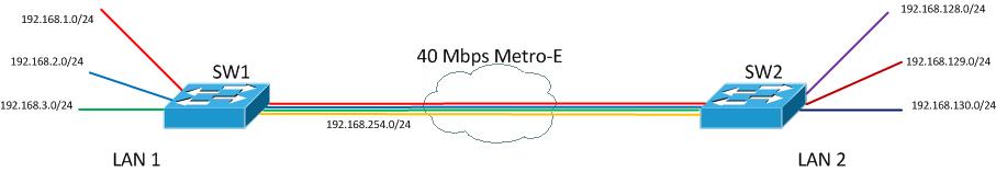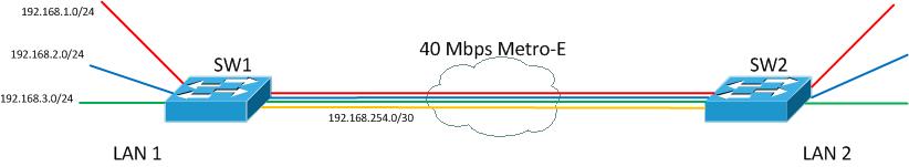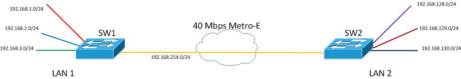 Metro Ethernet has made connecting different sites extremely easy for just about any level of admin. The problem is, however, it has also made for some very sloppy setups. It is nearly always a recommended best practice to route WAN links. This is particularly true when the WAN is a bottle neck in terms of throughput. If a LAN is built on Gigabit Ethernet and a Metro-E link between sites is only 40Mbps there is a bottleneck. Often LANs in small to medium sized organizations are way underutilized and this can be gotten away with. Typically the Layer 2 connection would span the 40Mbps link with little trouble. However, as traffic increases, a redundant link is added between sites, or requirements change you can find this design corners you with a need for a better way of controlling traffic flow.